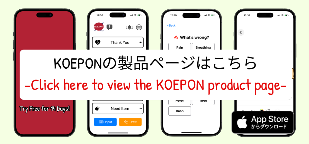 英語圏に家族や友人がいらっしゃっる方は、KOEPONっていうコミュニケーション支援アプリがあるんだよ!と是非是非お知らせください。世界にこえポンの輪を広げましょう!