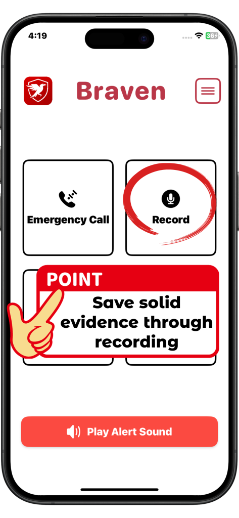 Braven is a support tool designed to help you take immediate action in situations involving harassment or danger. This guide walks you through each feature in a simple and clear way.