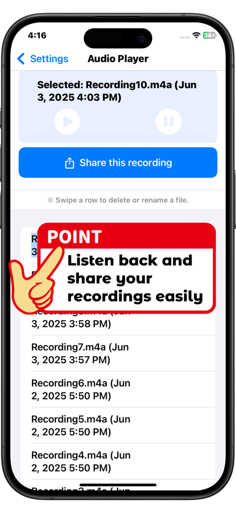 - Recordings are saved securely on your device.